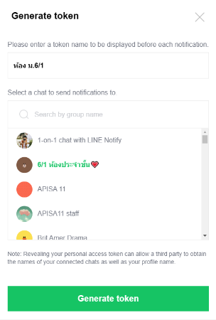 - ส่งไปหาตนเอง ให้เลือก 1-on-1 chat with LINE Notify