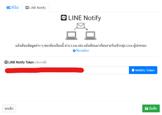 7.) นำรหัสโทเคน (Token) มาใส่ใน iSchoolDoc ที่ต้องการ และกดบันทึก